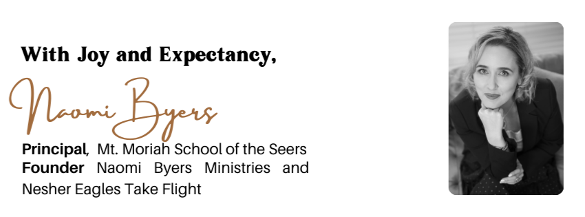 • Mt Moriah School of the Seers is led by Naomi Byers and operates under the covering of Mt Moriah Ministries.